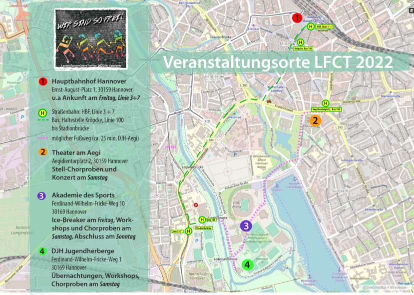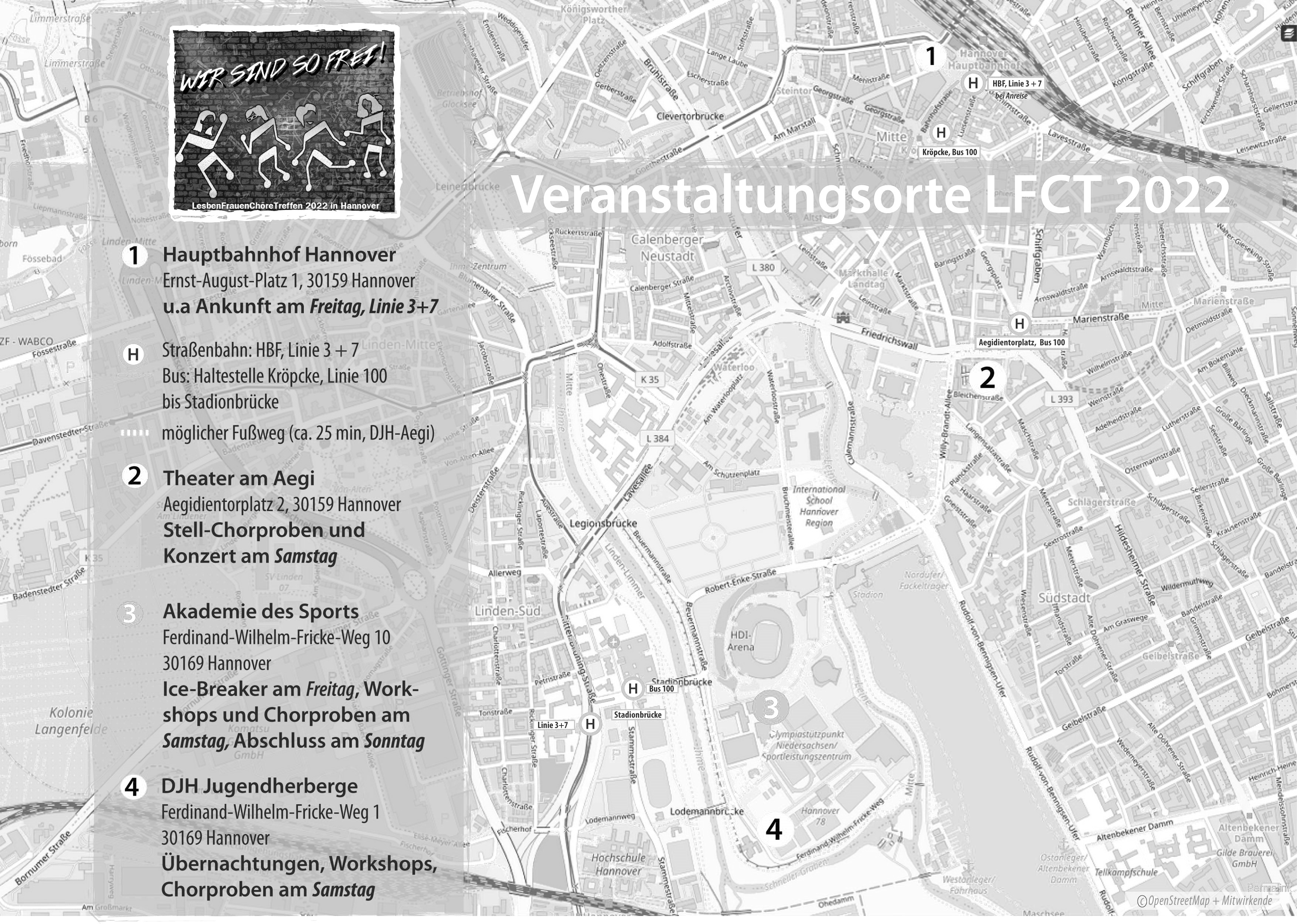Auf unserem Stadtplan findet ihr Informationen zur Anreise und die drei Veranstaltungsorte des LFCT 2022: